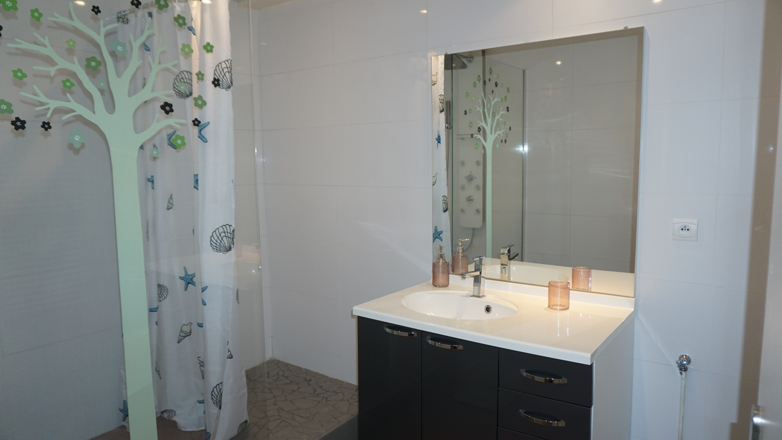 Près de 70 m², composé d'une jolie cuisine équipée, d'un salon, de deux chambres, d'une belle salle de bains avec douche à l'talienne, de toilettes suspendues et indépendantes ; il offre également une unité de sol qui lui donnne une belle sensation d'espace.