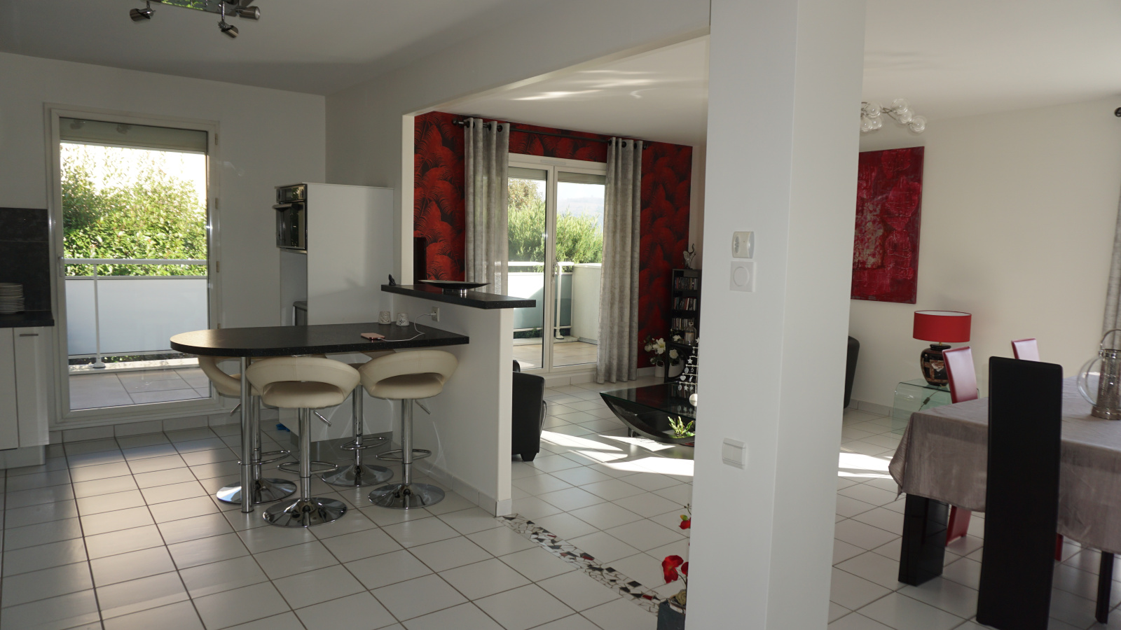 L'appartement est lumineux, ensoleillé et bénéficie de larges ouvertures.